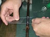 V曲げ形状は、ヒーター棒(下の写真)を使って局部を加熱して行います。 また、Rやパイプ形状などは正確なRや円筒形状の型(冶具)を作り、炉で全体を加熱しながら行います。 パイプの曲げも同様ですが、つぶれない工夫をして正確に曲げます。